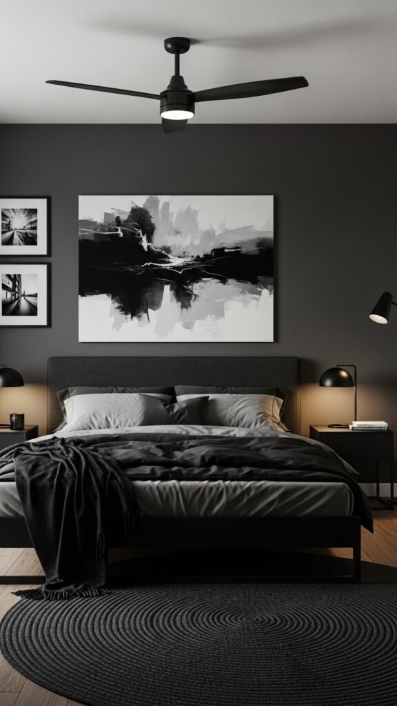Choosing beige as your foundational color instantly sets up a warm, calming backdrop that lets every black accent shine naturally. A beige wall color can make the room feel more spacious while still keeping it cozy, especially when you’re working with a smaller layout or low lighting. If the room gets sunlight, beige plays beautifully by picking up golden undertones that make everything look a little softer. It’s a color that works well with textured bedding, natural wood, and earthy décor, which means you can layer more without worrying about overwhelming the space. Using beige as your canvas also helps black décor pieces stand out in an elegant way instead of feeling too loud or stark.
