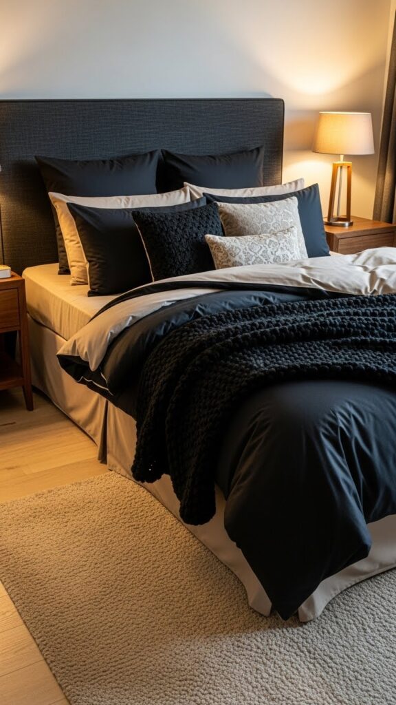 Layer Black & Beige Bedding for a Luxe Cozy Look