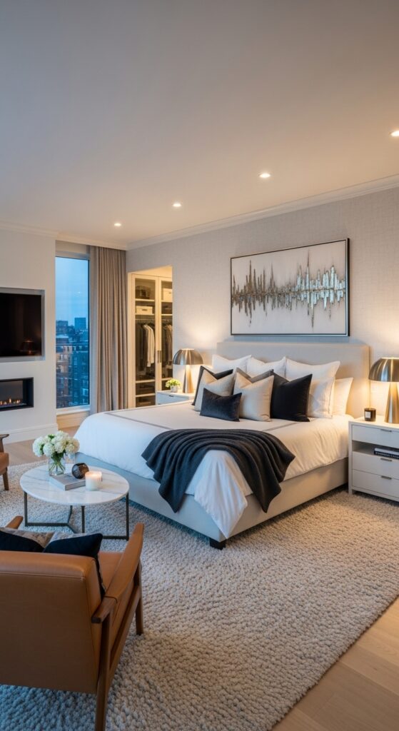 These small additions create depth and make the bedroom feel curated rather than flat. Texture softens the overall look and enhances comfort, which is central to any successful luxury bedroom design.
