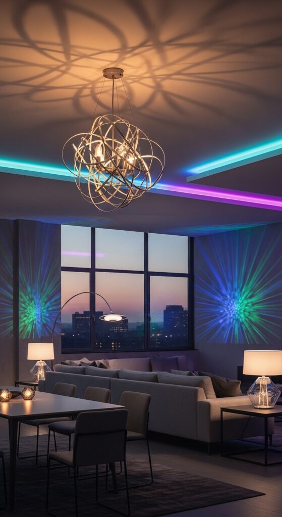 Layering lighting — combining ambient, task, and accent lights — gives the room depth and dimension. This approach enhances both functionality and design