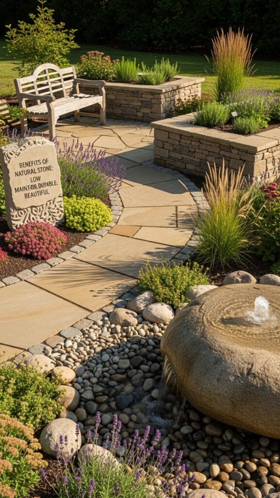 Natural stone water features don’t need to be elaborate. Even a small stone fountain or shallow water bowl can bring movement and life to the garden. When stone is used naturally, water features feel serene rather than showy, blending into the landscape instead of dominating it.