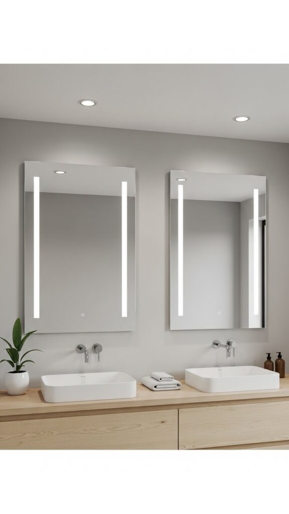 Large mirrors neutral bathrooms me light aur space ko reflect karte hain. Frameless mirrors modern aur minimal lagte hain, jabke thin wooden or metal frames subtle accent create karte hain. Mirrors bathroom ka functional aur decorative element dono banate hain.