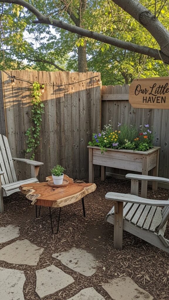 Wood ke natural grains aur imperfections rustic feel ko aur strong karte hain. Perfect polish ke bajaye slightly rough texture zyada authentic lagta hai. Ye elements backyard ko nature ke kareeb le aate hain.