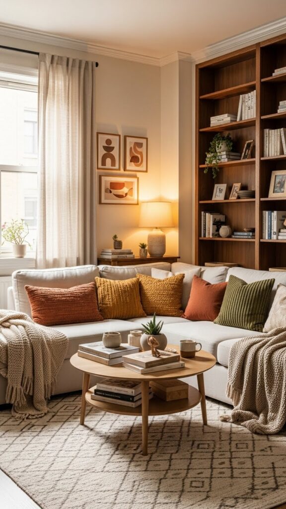 In small apartments, furniture that serves multiple purposes is essential. Sofas with hidden storage, coffee tables with shelves, or ottomans that double as extra seating allow you to maximize functionality without sacrificing style. Multi-functional furniture keeps the room uncluttered, making it easier to maintain a cozy atmosphere. By carefully selecting versatile pieces, you can create a living room that adapts to your needs while keeping the cozy aesthetic intact. It’s not just about looks—it’s about making the space practical for daily life.