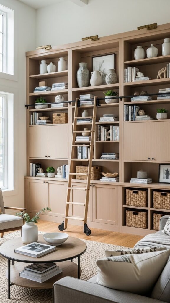 When floor space is limited, vertical storage is key to keeping a small living room tidy while enhancing the cozy feel. Floating shelves, tall bookcases, or wall-mounted cabinets allow you to store books, décor, and personal items without crowding the room. Display carefully chosen decorative objects, framed photos, or plants to maintain a personal yet uncluttered look. Vertical storage draws the eye upward, creating a sense of height and openness that complements the cozy aesthetic.